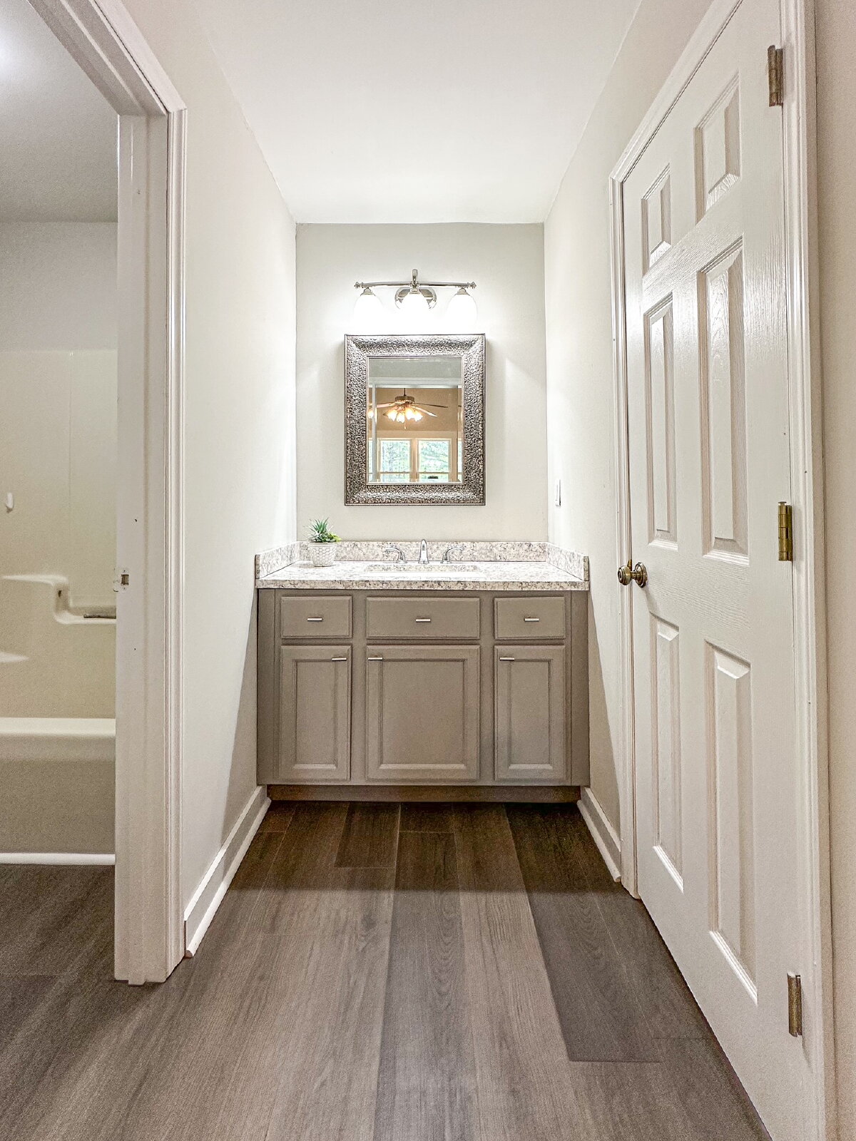 When you enter the home, you will be greeted by lots of natural light, neutral walls, gorgeous LVP floors, and vaulted ceilings. The kitchen, offering a fresh inviting atmosphere that is perfect for gatherings, has ample amount of storage space for all your culinary needs, furnished with stainless steel appliances, and a cozy picture bay window overlooking the front yard for your dining space.