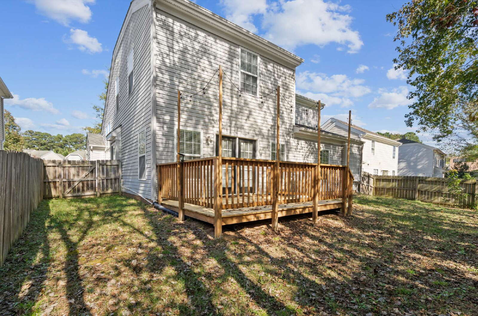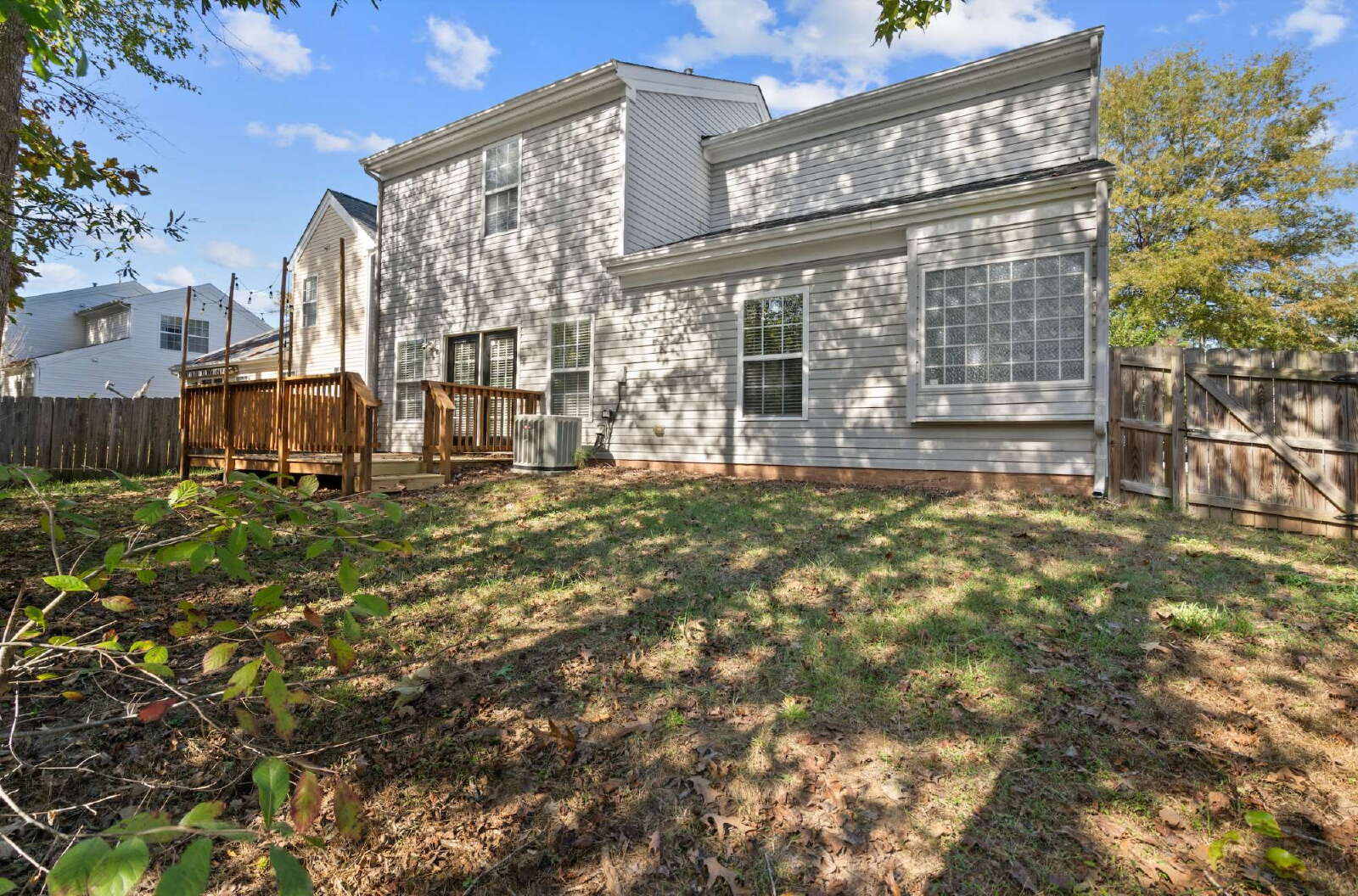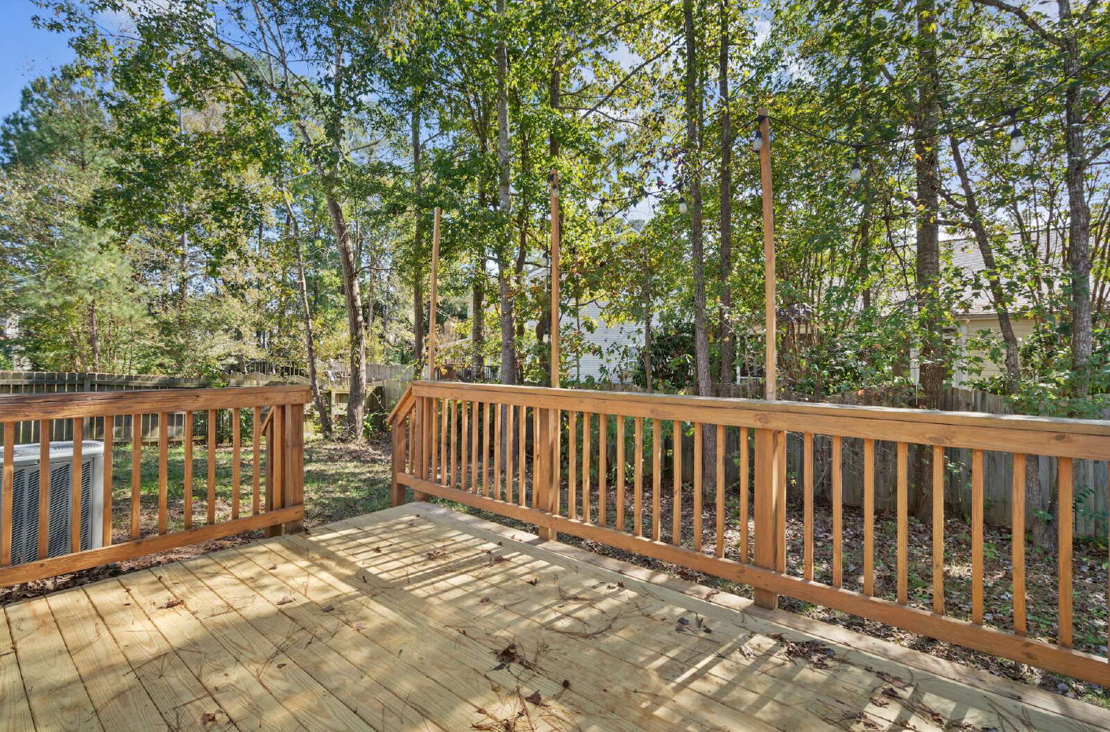 The first floor primary bedroom suite offers a spa-like feel with a generous walk-in closet, hardwood floors, natural light, trey ceiling, soaking tub, separate shower, and long vanity. The thoughtful layout of the three upstairs guest bedrooms with a full guest bath ensures both privacy and connectivity, making it an ideal space for both quiet moments and lively get-togethers. Outside, you and a four-legged friend can enjoy a large wooden deck designed for quiet mornings or evening relaxation inside the private fenced-in backyard.