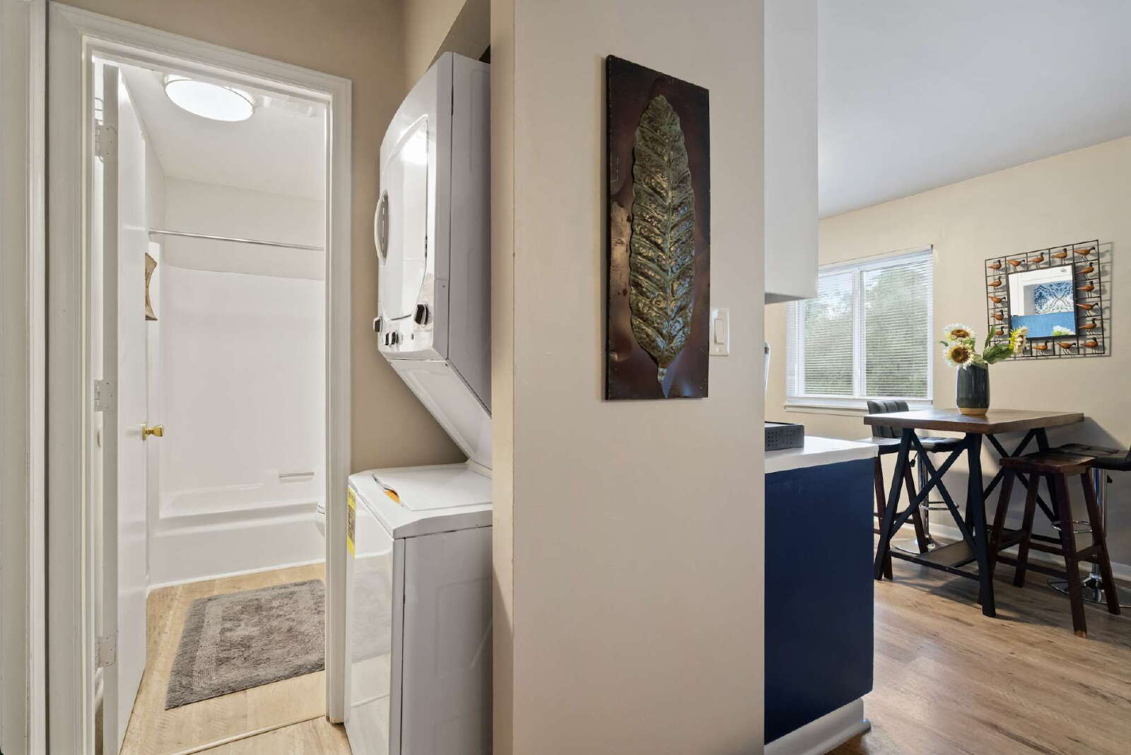 The private full bathroom and in unit stackable washer/dryer adds a touch of luxury to your daily routine, making it easy to start and end your day with ease.